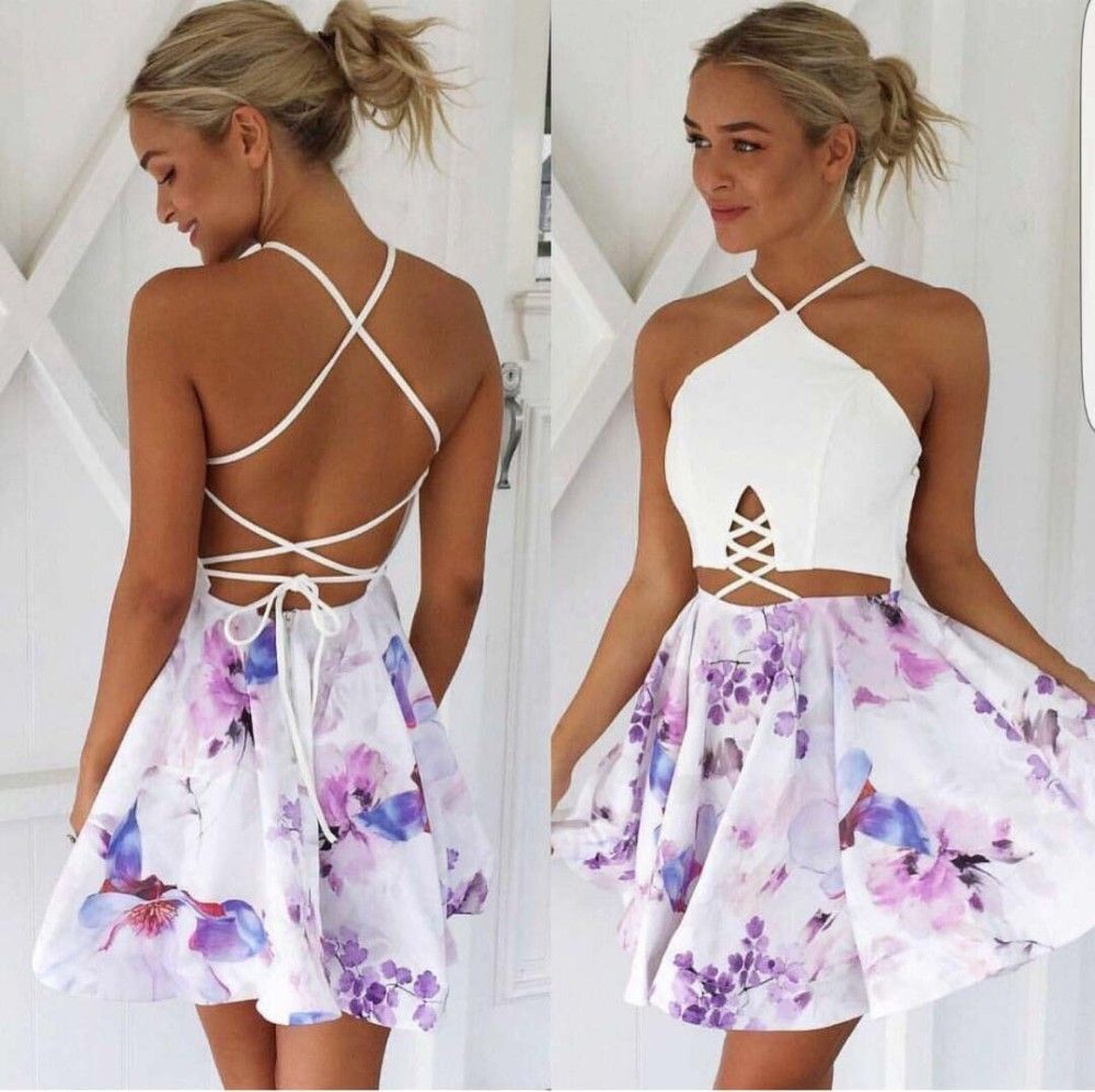 SR1086,Cute Two Pieces Homecoming Dresses,Short Juniors Dresses,Two Pieces Print Party Dresses