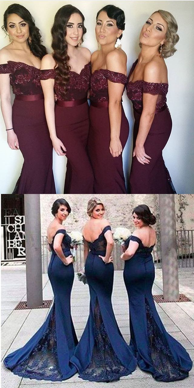 SR1125,Mermaid Off Shoulder Lace Train Bridesmaid Dress