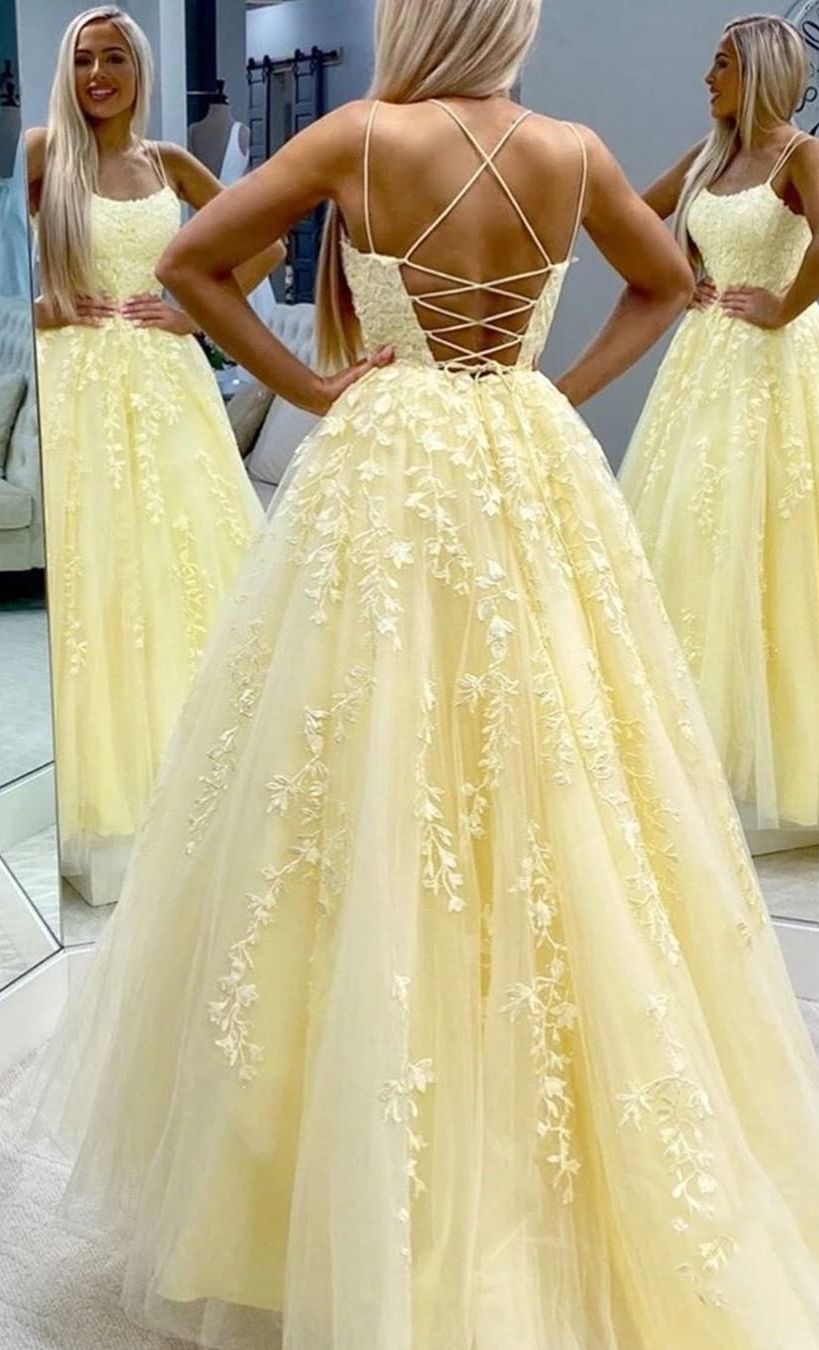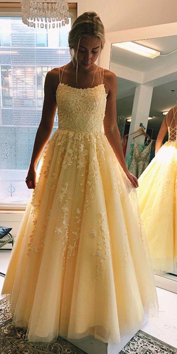 SR1030,Yellow Lace Prom Dresses,Floor Length Evening Dresses,Backless Evening Dresses