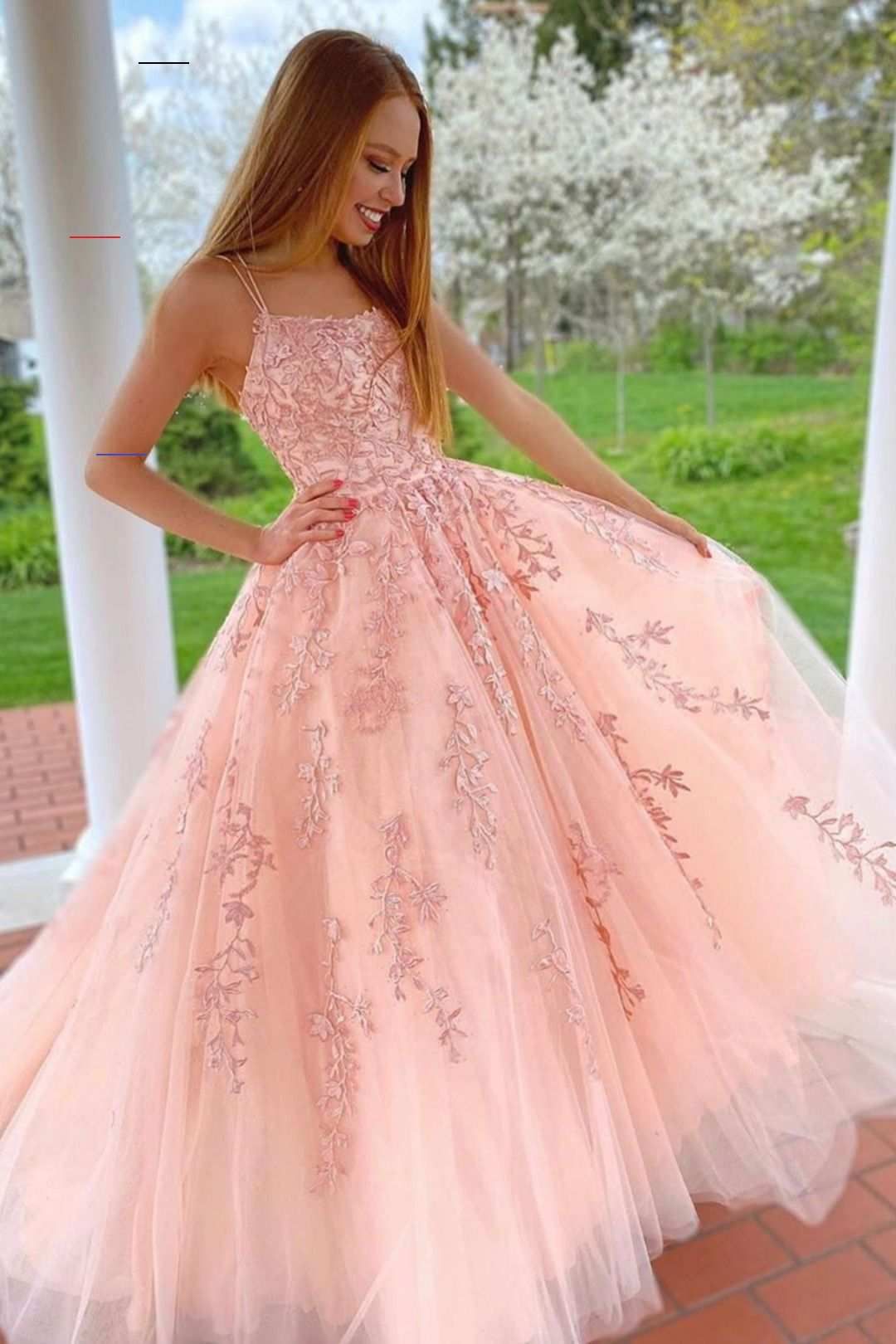SR1053,A-line Pink Evening Dresses,Lace Appliques Prom Dresses,Backless Prom Gown