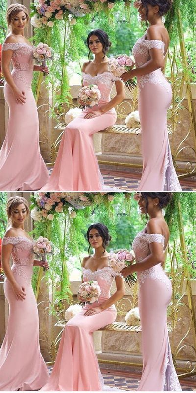 SR1120,Off the Shoulder Custom Made Bridesmaid Dresses,Pink Bridesmaid Dress with Appliques