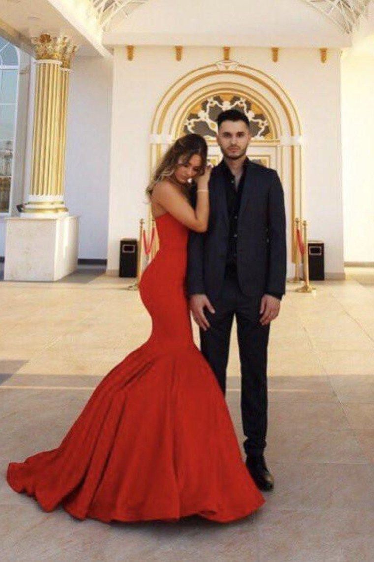 SR1150,Red Mermaid Long Prom Dresses Satin Evening Formal Gown