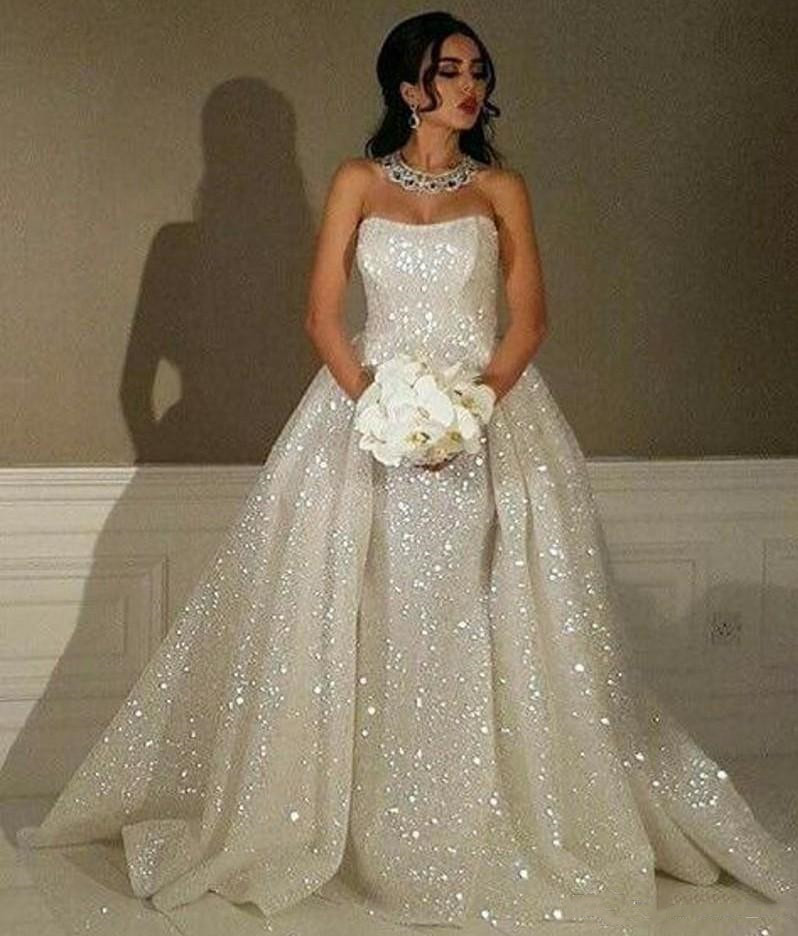 SR1218,Glitter Ball Gown Strapless Sparkly Wedding Prom Dresses