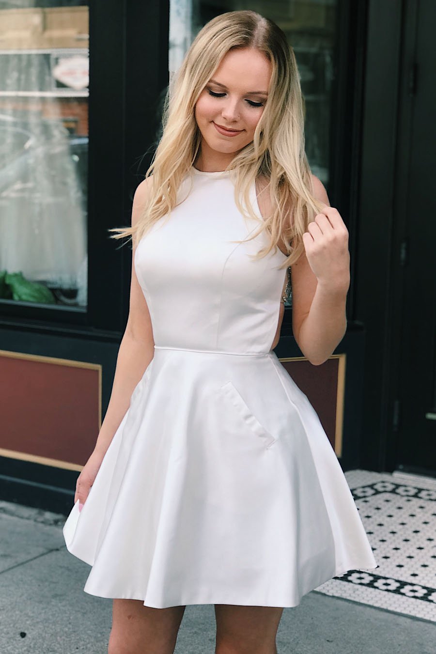 SR1262,Jewel Neck Beading Pink Homecoming Dress with Beautiful Sheer Back