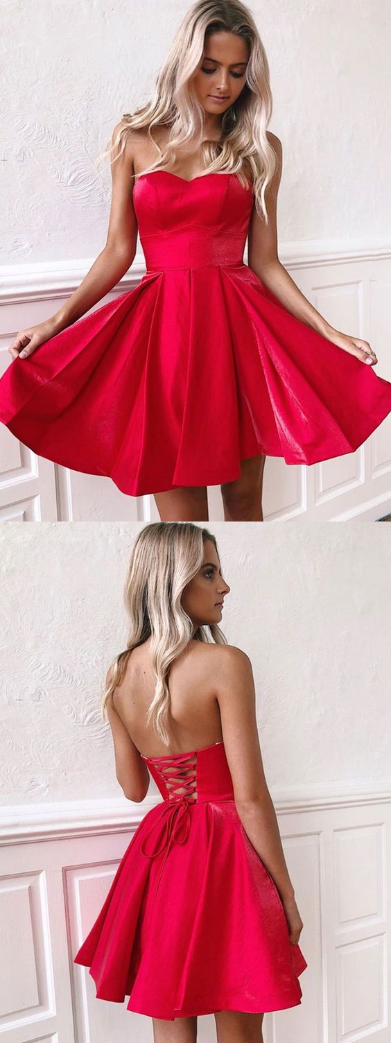 SR1275,Simple sweetheart red satin short prom dress red homecoming dress