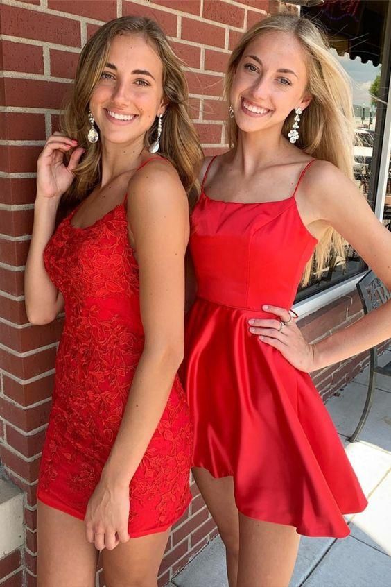 SR1312,Tie Back Appliqued Sheath Red Homecoming Dress