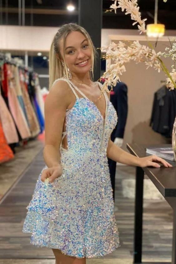 SR1316,Cute A-Line Sequins Short Homecoming Dress
