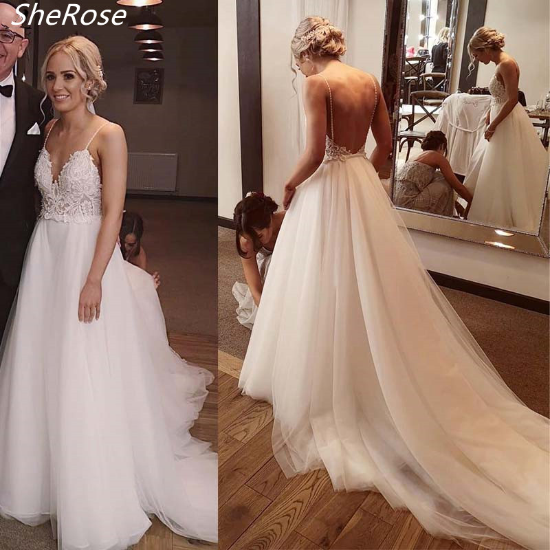 SR1370,Backless Lace/Tulle Beach Wedding Dress Fashion Bridal Gown