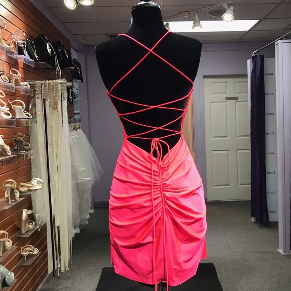 SR1430,Cheap Satin Mermaid Homecoming Dresses,Cross Back Mini Party Gown