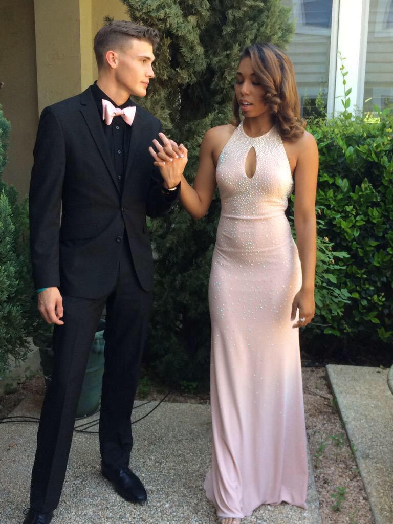 SR1440,New Arrival Column/Sheath Blushing Pink Beaded Prom Dresses