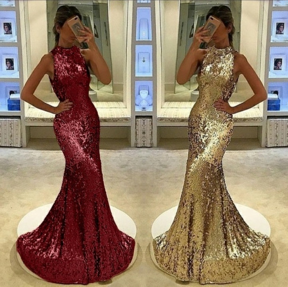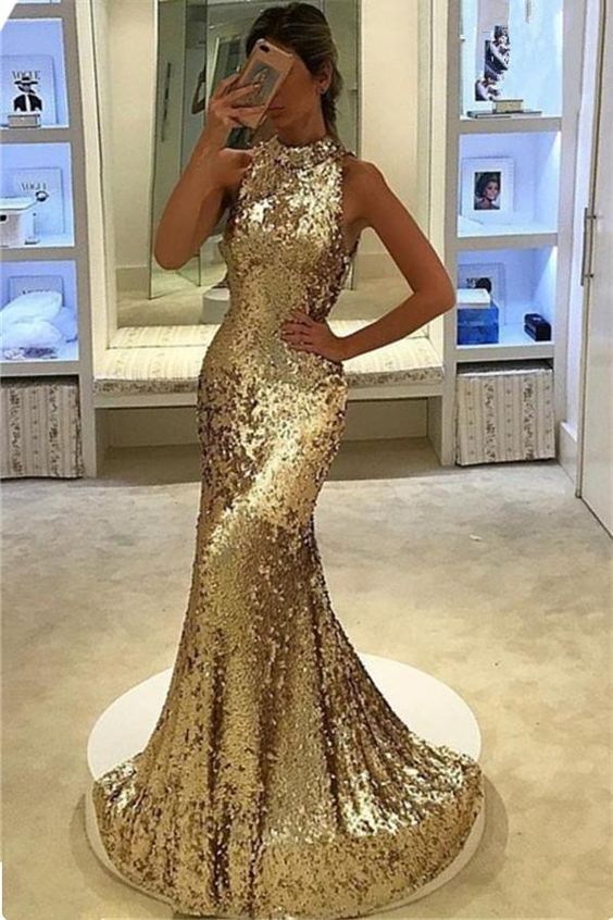 SR1476,2022 Mermaid Gold Sequin Long Prom Dresses,Sleeveless Trumpet Full Length Evening Dress