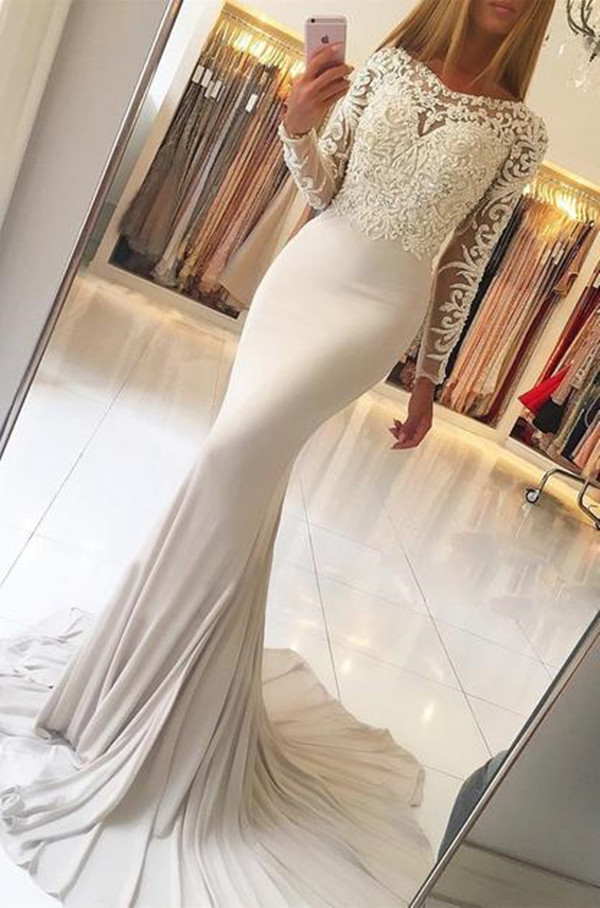 SR1477,2022 Elegant Mermaid Long Sleeves Prom Dresses With Appliques