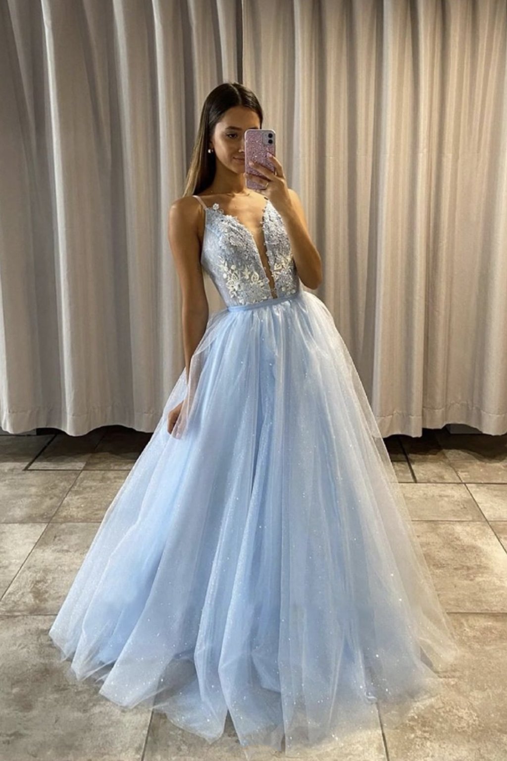 SR1493,Gorgeous Straps Light Blue Long Prom Dress