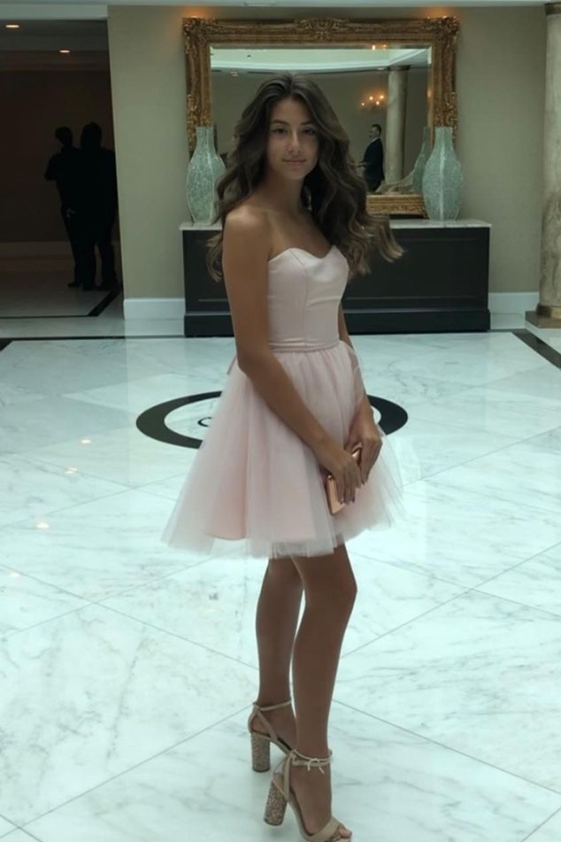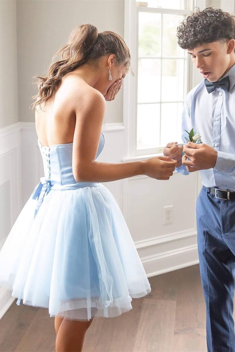 SR1497,Pink Strapless A-line Short Homecoming Dress