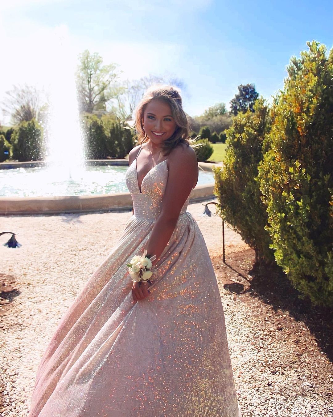 SR1522,Champagne Shiny A-line Long Prom Dress with Spaghetti Straps