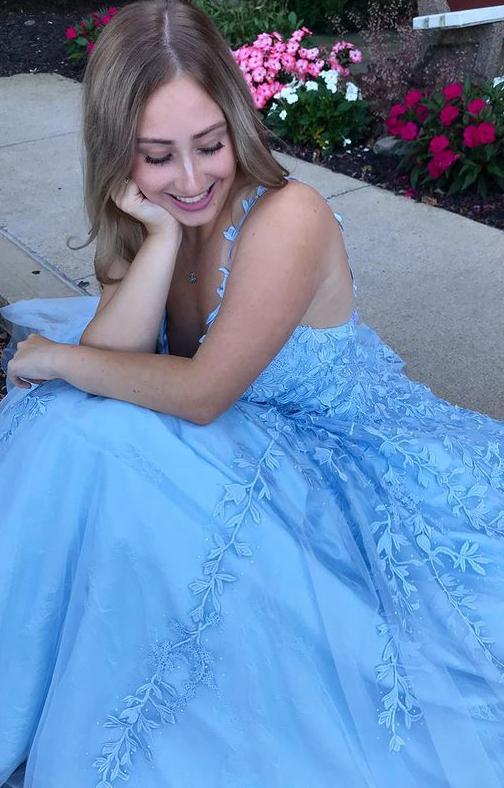 SR1588,V-neck A-line Tulle Long Prom Dresses with Appliques and Beading,Evening Dresses,Formal Dresses