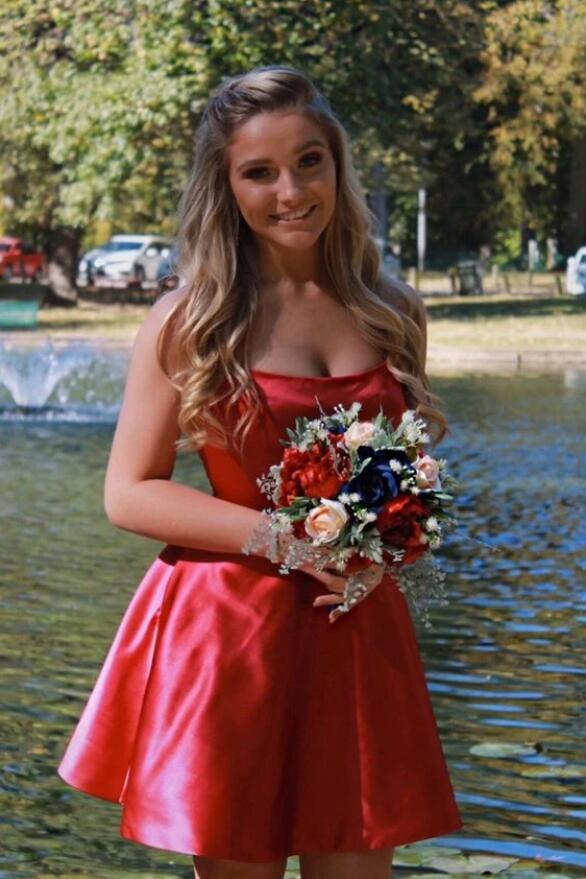 SR1614,Cute Red Satin Short Homecoming Dress,Red Mini Prom Gown