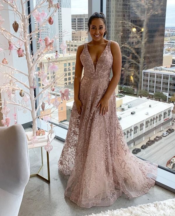 SR1662,V-Neck Lace Long Prom Dress,Pink Evening Dress,A-Line Prom Dresses