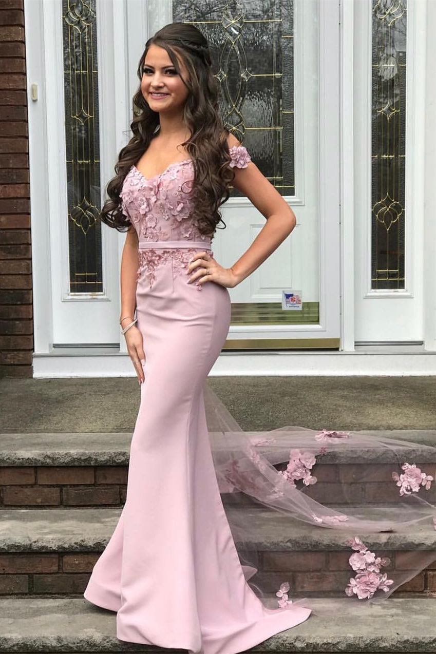 SR1666,Gorgeous Off the Shoulder Mermaid Pink Prom Dress