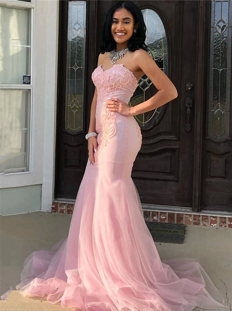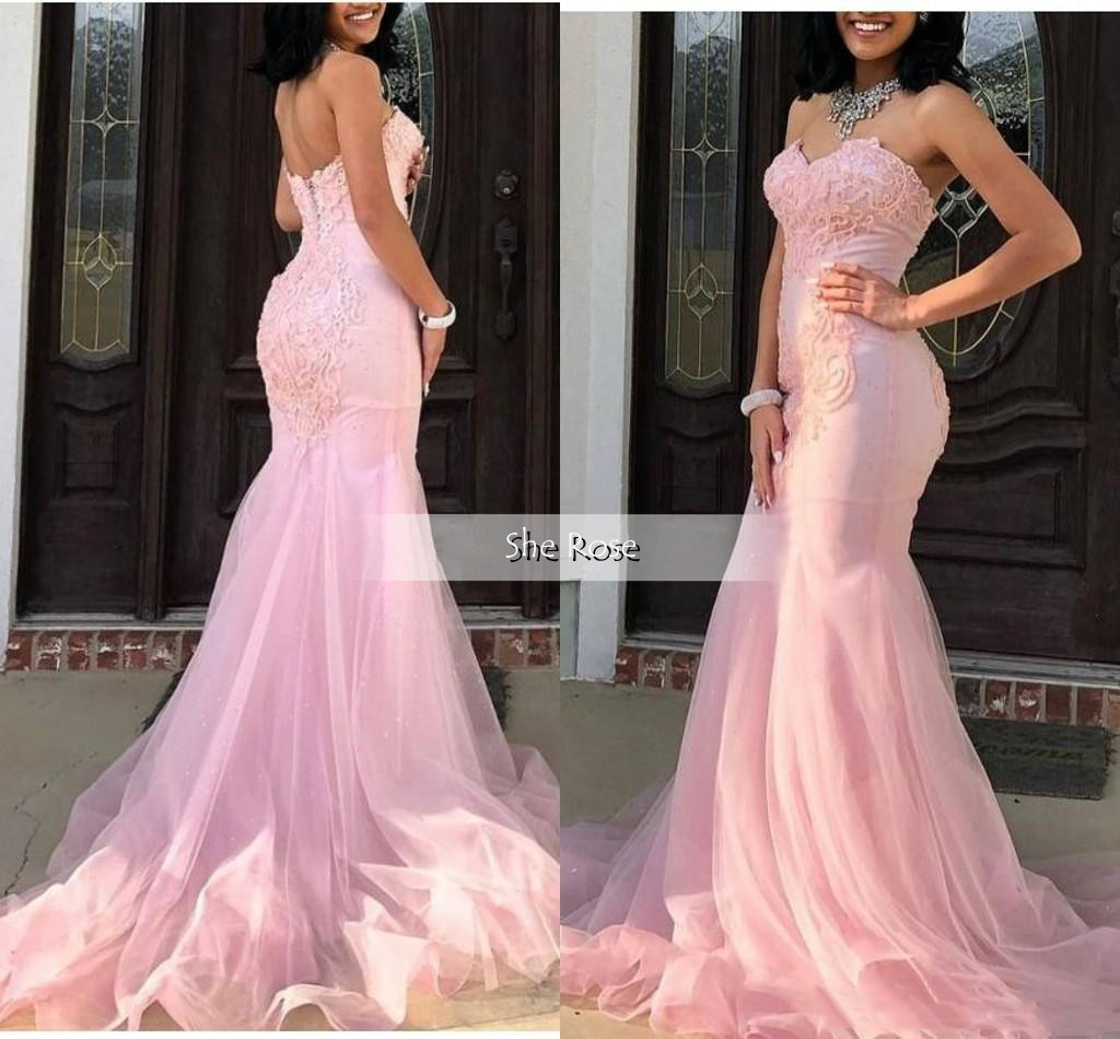 SR1667,Sweetheart Mermaid Organza Pink Long Prom Dress with Lace