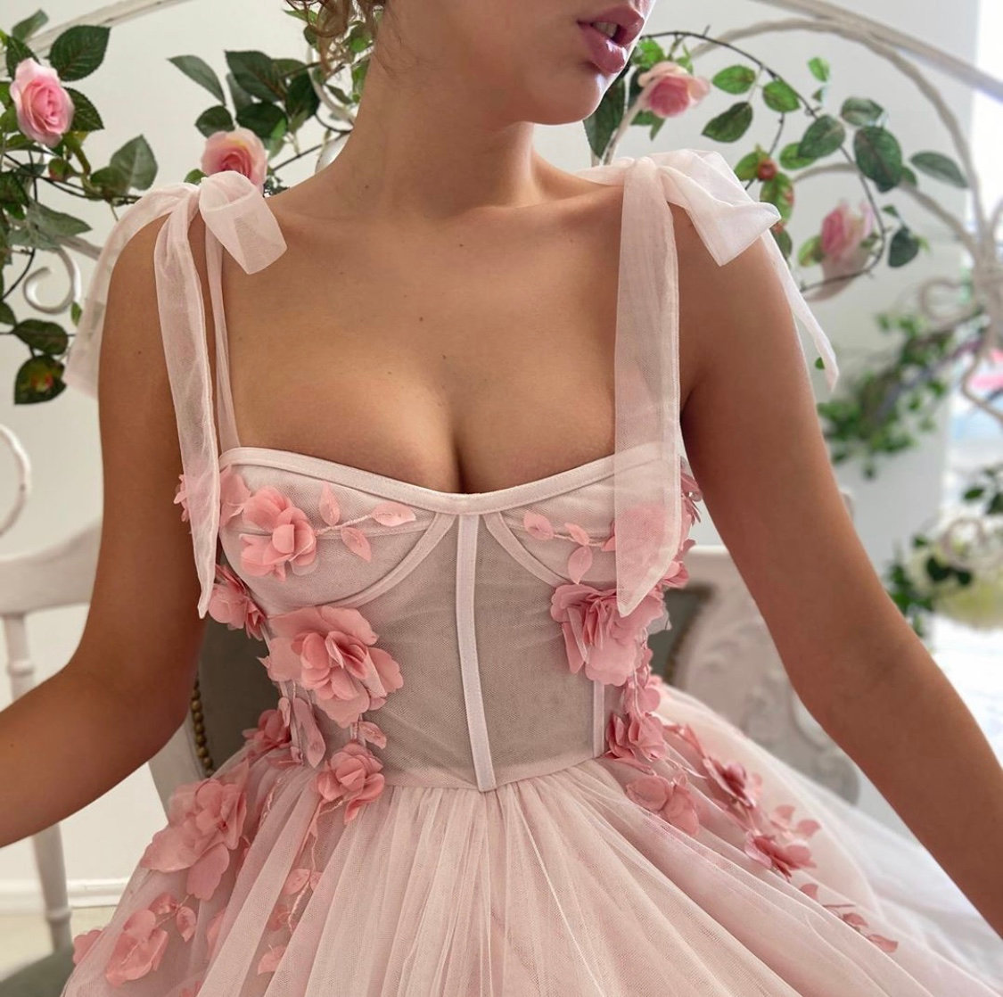 SR1673,Vintage light pink sweetheart tulle prom dress,applique ball gown,sleeveless tie bowknot prom party dress