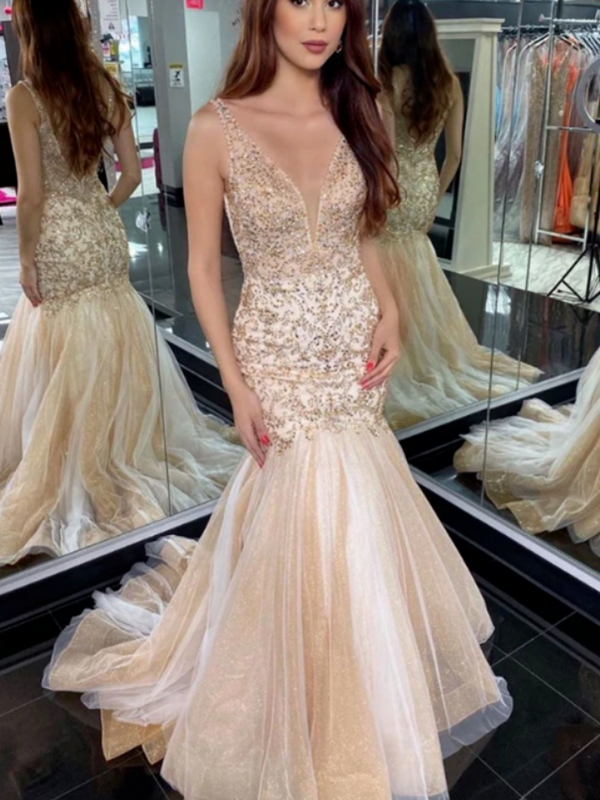 SR1691,V-neck Quality Beaded Long Prom Dresses, Mermaid Lace Popular 2022 Prom Dresses Long