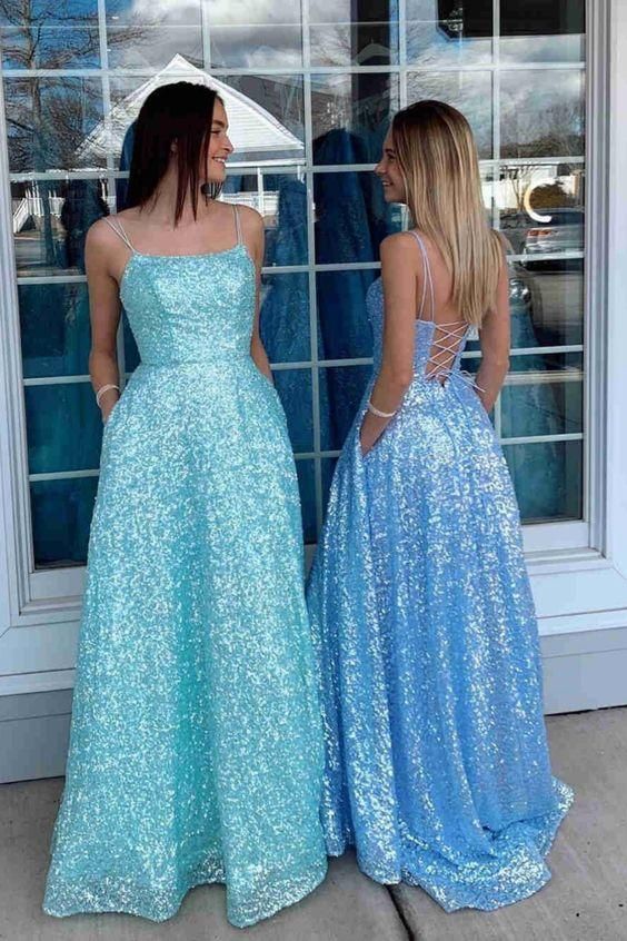 SR1718,Spaghetti straps sequined long prom dress formal dress