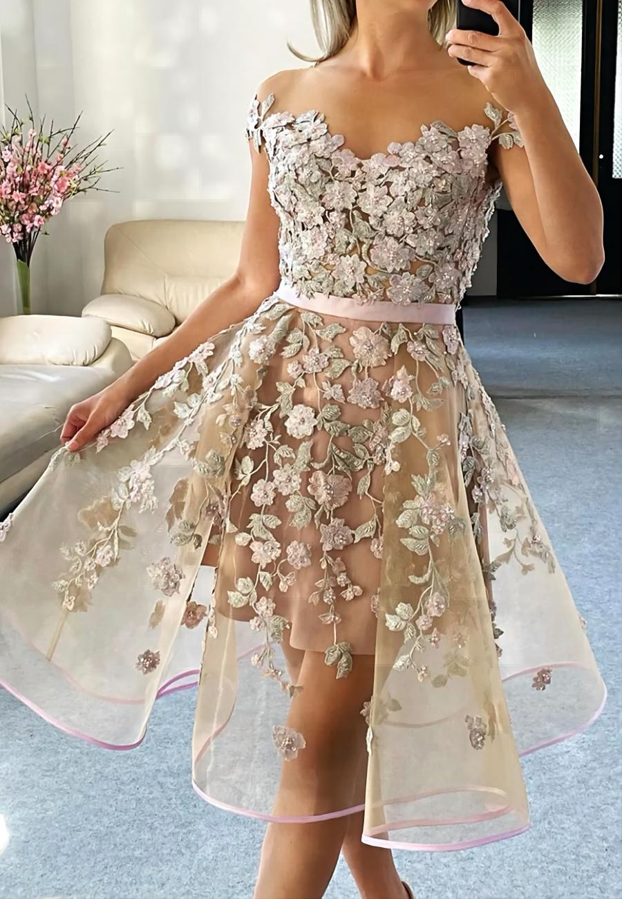 Floral Off The Shoulder A-Line Homecoming Dresses, Elegant School Dance Dresses