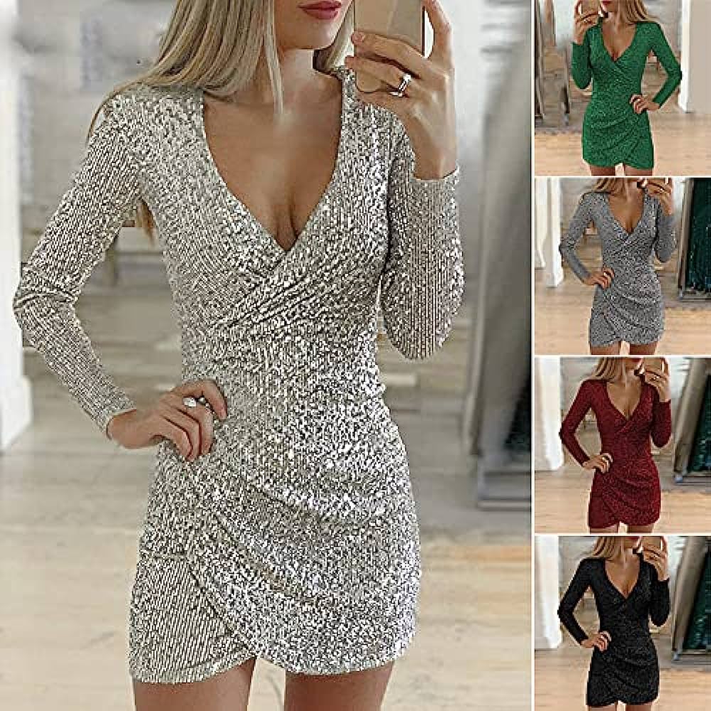 High Quality Custom Made Long Sleeves Sequined Homecoming Dresses, Sexy V-Neck Mini Hoco Dresses, Multi Colors Celebraties Dresses