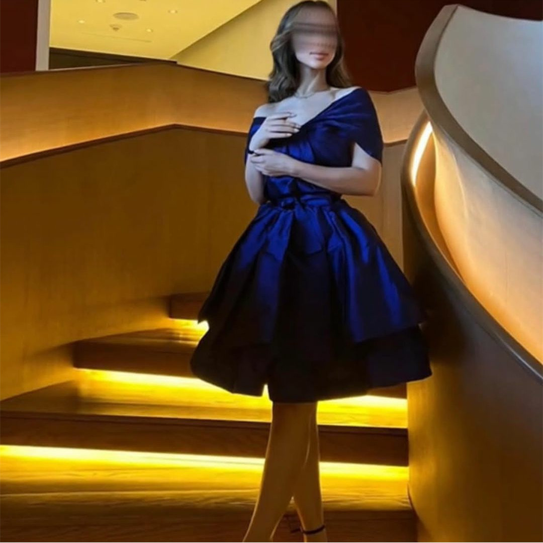 Unique Design Royal Blue Homecoming Dresses, Off The Shoulder Satin Hoco Dress