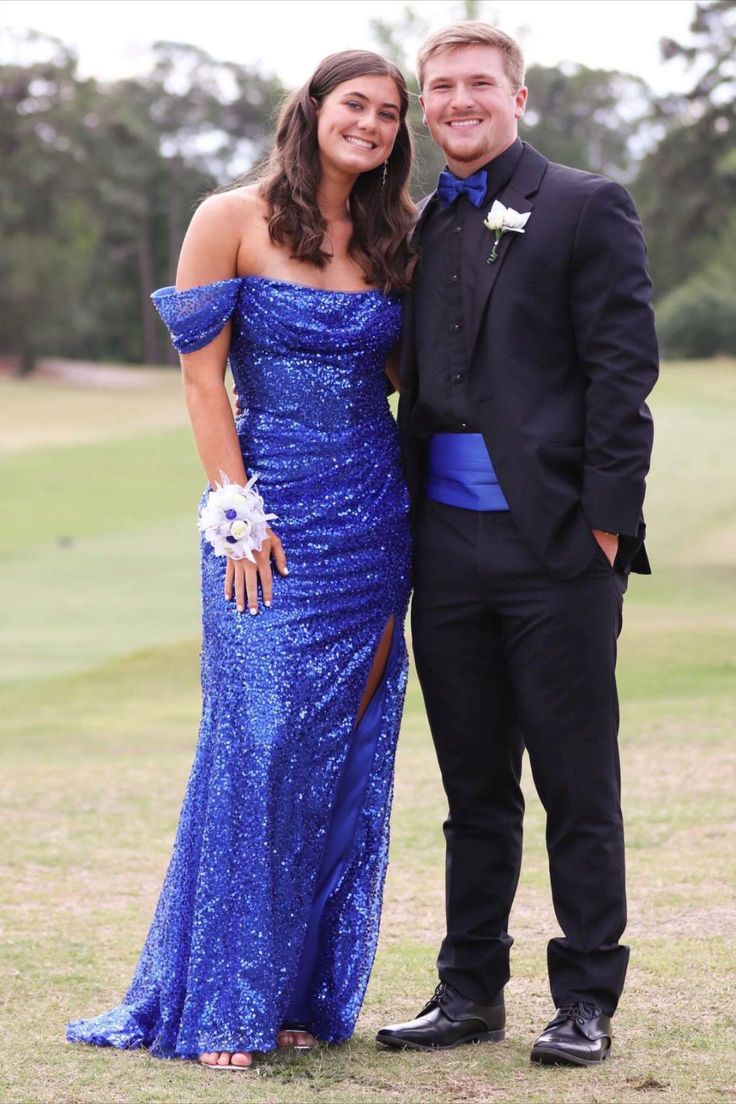 Royal Blue Sequins Off The Shoulder Long Prom Evening Dress